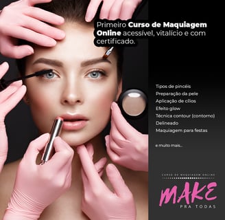 Descubra os segredos da maquiagem e torne-se uma maquiadora profissional! Aprenda desde o preparo da pele até técnicas avançadas para diferentes ocasiões: dia, noite, noivas e festas. Um curso completo para quem deseja empreender na área da beleza, aumentar sua renda e transformar autoestima através da arte da maquiagem.