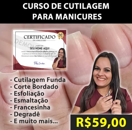 Aprenda a remover cutículas com precisão, segurança e acabamento impecável! Neste curso, você vai dominar técnicas de cutilagem para mãos e pés, higiene, cuidados com os instrumentos e atendimento profissional. Ideal para quem deseja se destacar como manicure e oferecer um serviço de excelência.